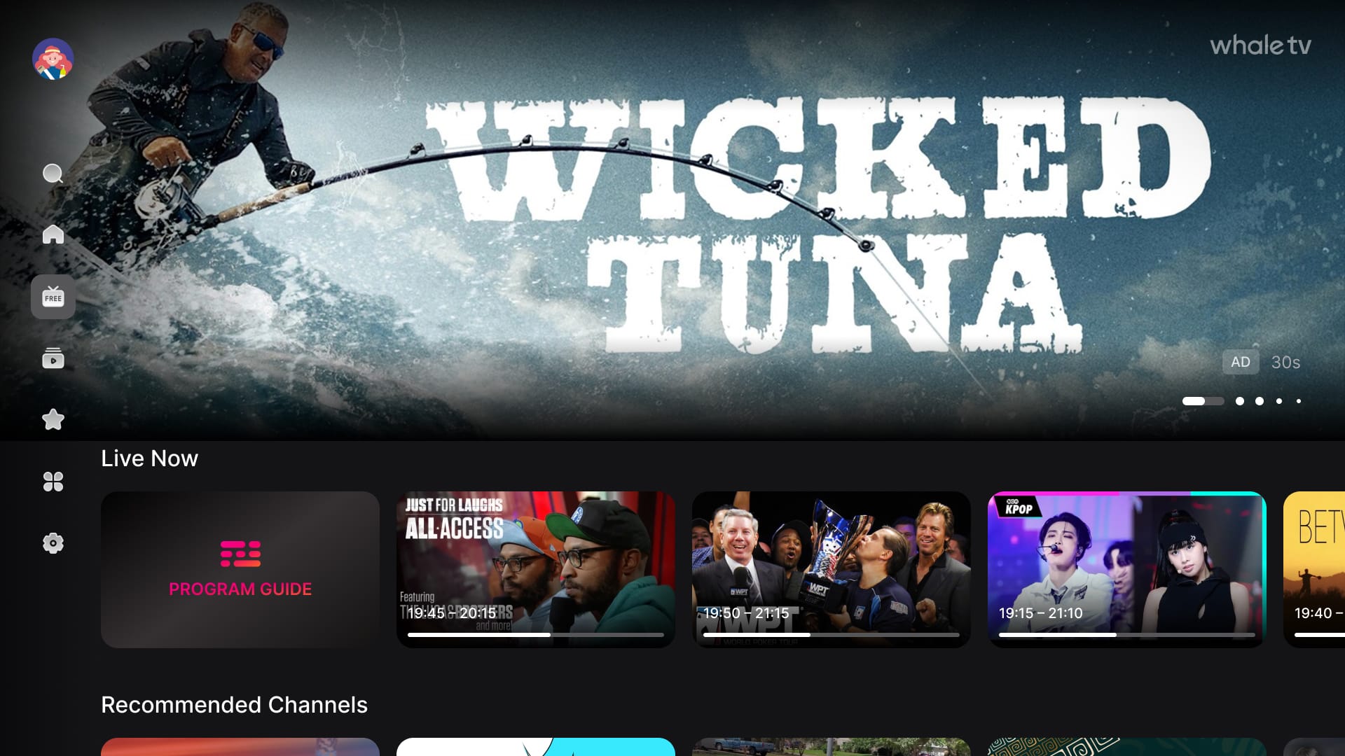 Whale TV+ lets you stream endless hours of free TV, both live and on demand. Watch a movie or enjoy your favourite cooking show, sports or music videos-all for zero cost.