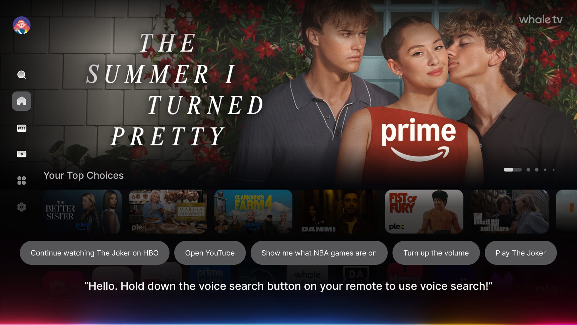 Whale TV gives you the flexibility to choose your own voice assistant! Opt for Whale TV’s built-in , AI-powered voice assistant, or switch to Alexa. Use your voice to effortlessly find new things to watch or control your TV - “look, Mom, no hands!”