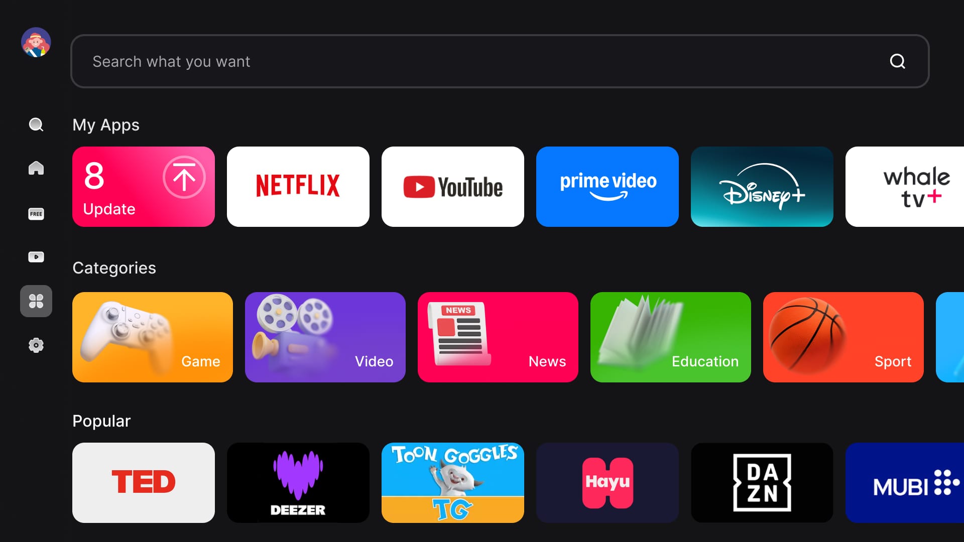 With today’s endless viewing options, it’s easy to get overwhelmed. That’s why Whale TV was designed to help consumers navigate this sea of entertainment. The built-in universal search and AI-powered recommendation engine helps you find new things to watch in seconds.